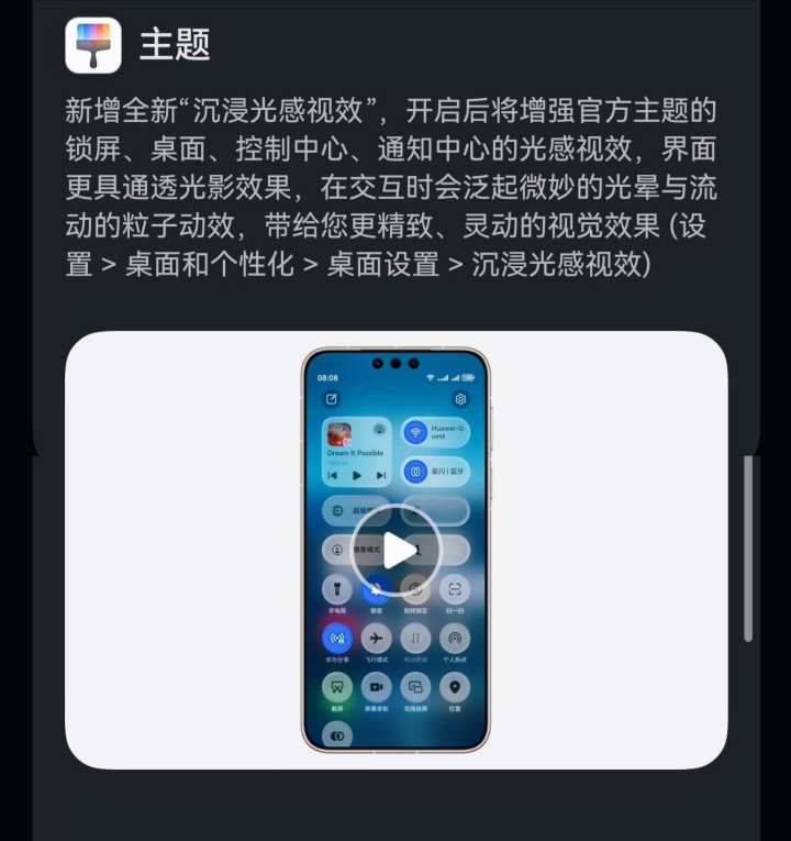 但这次华为工程师似乎是想在屏幕里造出一束光,当你滑动锁屏或者控制中心时,那种光影的流动和粒子的扩散,会让你产生一种手指在拨动流水的错觉。