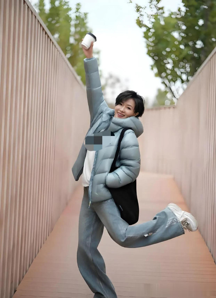 郑州股票配资万茜剪了短发真时髦! 穿连帽羽绒服+牛仔裤, 减龄又高级!