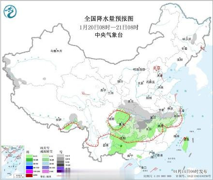 (2)19日-20日晨降雪可能达到巅峰,陕西南部的山区、河南、湖北北部、安徽西部和北部一带,可能出现成片的大雪,部分地区暴雪。