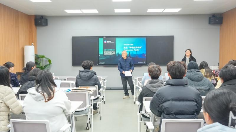 开幕式后,盛瑨以“唤醒、重塑、共生——讲好中国故事与人工智能艺术实践”为主题进行专家讲座,深入剖析了人工智能在艺术创作中的应用潜力与挑战。南京视网么信息科技有限公司总经理张帅则围绕“穿越虚拟与现实:增强现实元宇宙产业与场景革命”,探讨增强现实技术在元宇宙产业中的应用前景与场景创新。