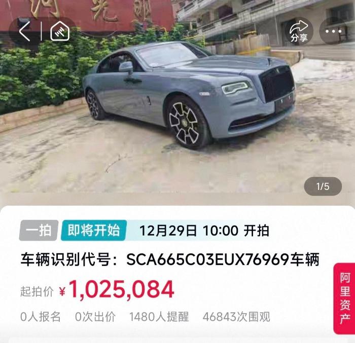 大皖新闻讯 12月22日,大皖新闻记者从阿里资产平台看到,一辆估价为128万元的劳斯莱斯将于12月29日10时第一次法拍,起拍价1025084元。目前,吸引了4万多人次围观,但暂无人报名。